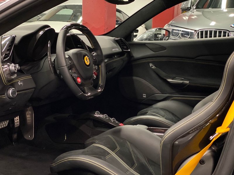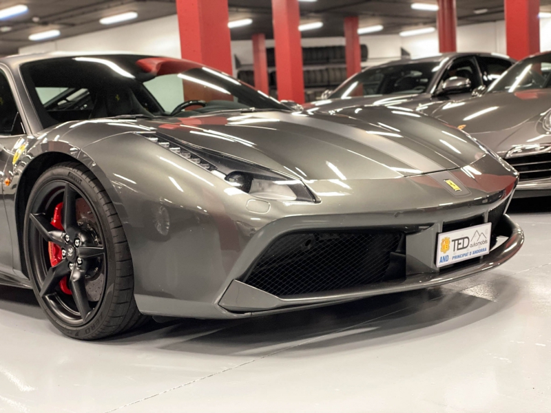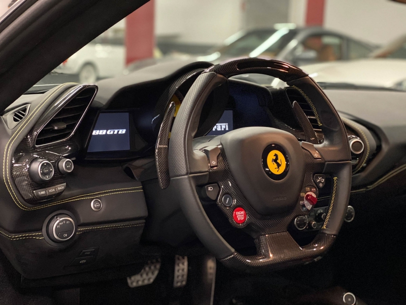 Ferrari 488 GTB 670cv. Vehicle semi-nou amb garantia. Extres: - Canvi automàtic amb leves de carbono - Navegador GPS - Seients backets de cuir/alcantara elèctrics amb memòria - Seients calefactables - Climatitzador automàtic - Volant multifunccions de carbono - Regulador de Velocitat - Sistema Hi-Fi JBL amb USB - Keyless, arrancada sense clau - Bluetooth - Llums Bi-xenon automàtics - Sensor de pluja - Sensor de Parking amb càmera devant i darrere - Llandes negres - Pinces de fre vermelles - Sostre negre mate - Front lift - Escut Ferrari lateral en groc - Pantalla amb informació costat passatger - Kit aero carbono - etc... Whatsapp: +376 343 350