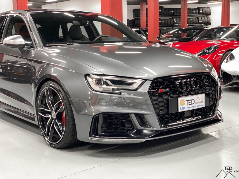 Audi RS3 2.5 turbo 400cv. Vehicle amb garantia de 12 mesos . Extres: - Canvi auto/sequencial - Apple Car Play - Llandes d'aleació d'origen amb pneumàtics d'hivern nous + Llandes aleació estil RS6 amb pneumàtics d'estiu Opcionals- Navegador GPS - Sistema Hi-Fi Bang & Olufsen - Bluetooth Tel/Audio - Seients Audi Sport de cuir amb costures niu d'abella vermelles - Motlles Eibach - Comptadors amb pantalla Digital Display - Climatització automàtica - Volant multifuncions d'alcantara i cuir - Regulador de velocitat adaptatiu - Keyless, arancada sense clau - Fars Matrix LED - Sensor llums - Sensors de parking devant i darrere amb càmera - Sensor de pluja - Sostre obert - Vidres tintats - Pinses de fre vermelles amb logo Audi RS - etc... Whatsapp: +376 343 350