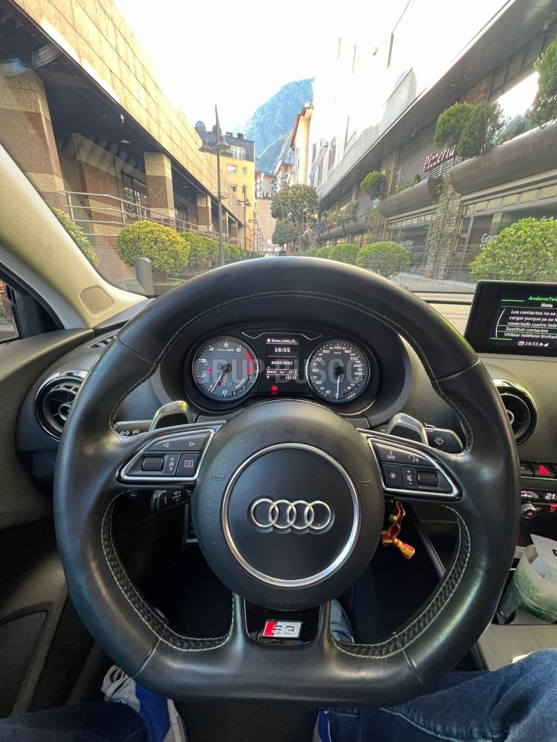Audi S3 Sedan Quattro 300cv, vehicle en perfecte estat. Garantia 12 mesos inslos. Extres: -Canvi Auto/Sequencial -Pantalla multimedia -System hifi -Sostre obert/panoramic -Bluetooth Tel/Audio -Seients semi-cuir -Climatització automatica -Volant multifuncions -Regulador de velocitat -Mirall electrocròmic -Bi-xenon -Sensor llums -Sensor de parking devant i radere -Sensor de pluja -Llantes aleacio 20" amb Neumatics d'estiu ec
