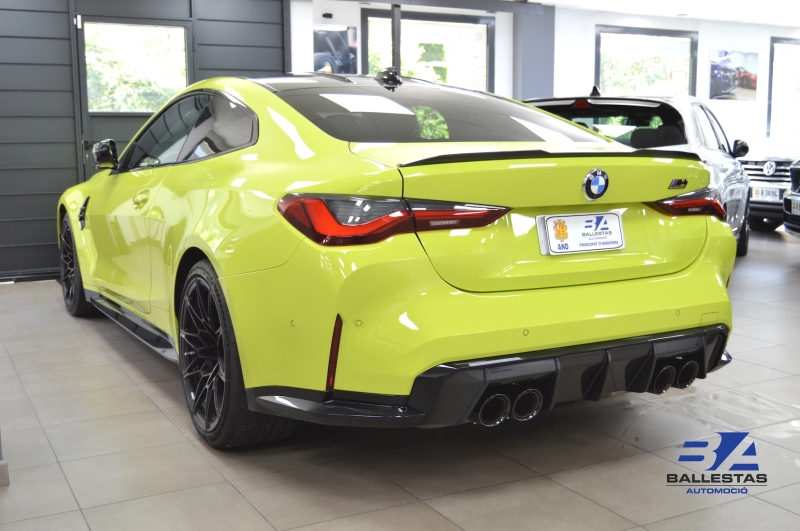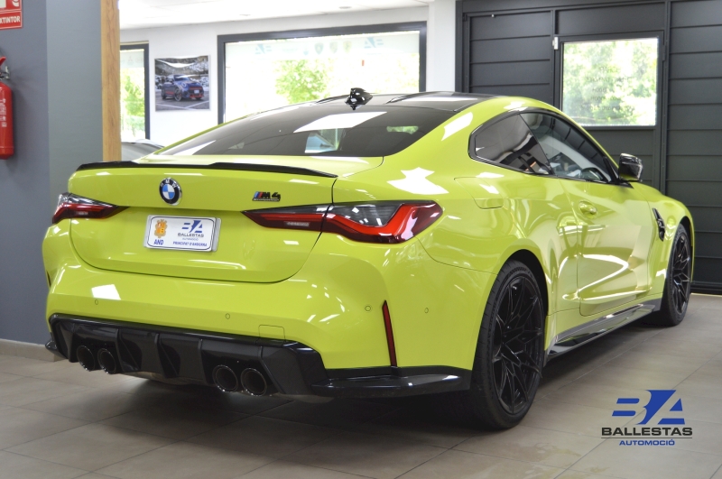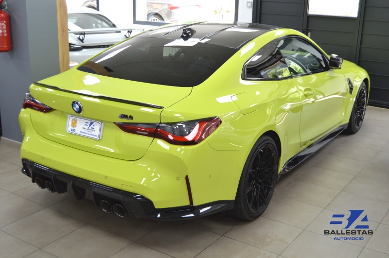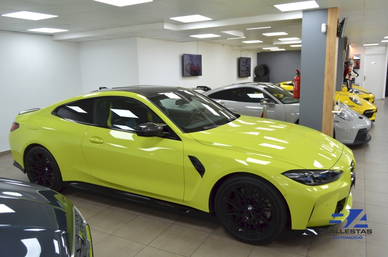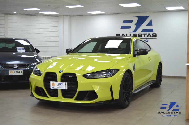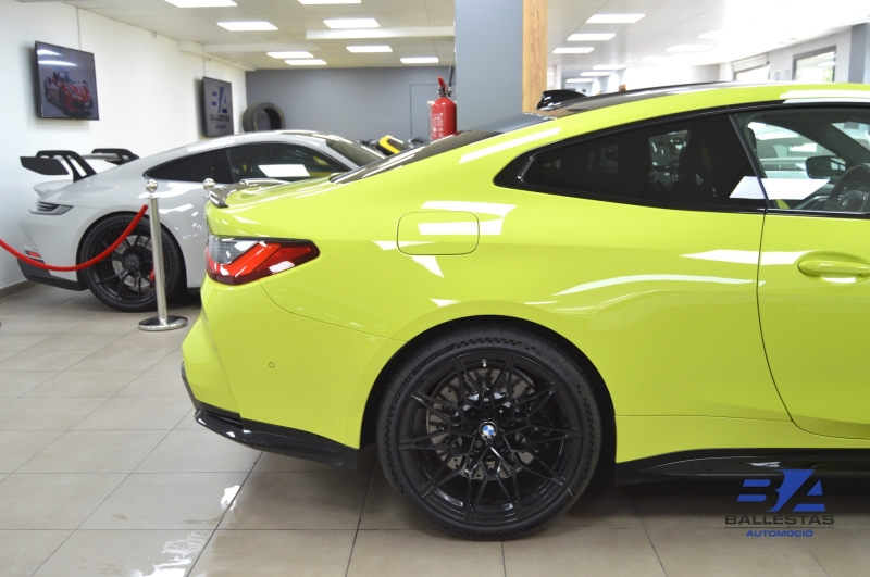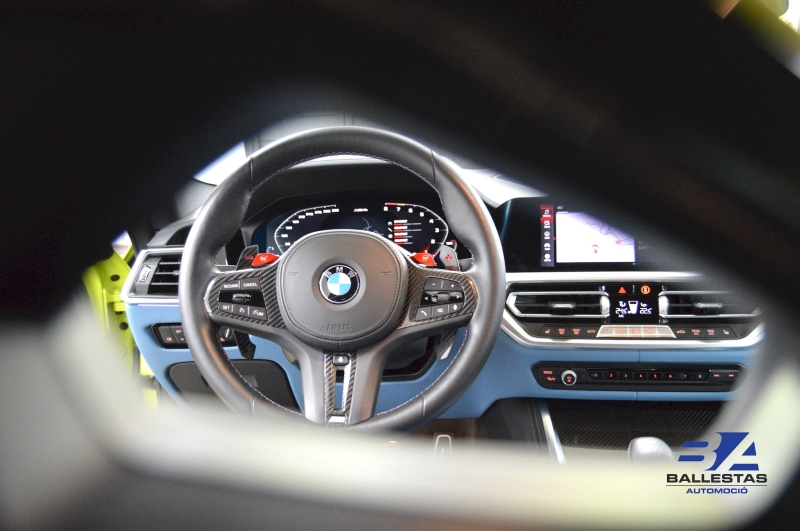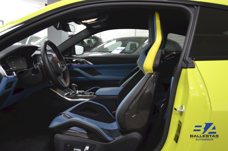 Espectacular BMW M4 Competition Coupé en color exclusiu Sao Paulo Gelb i interior Merino Yas Marina Blau/Groc, amb només 37.000 km.