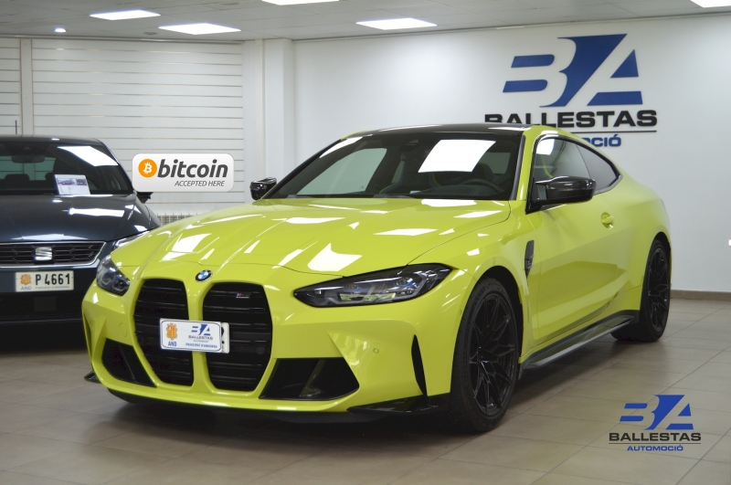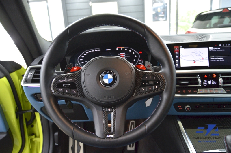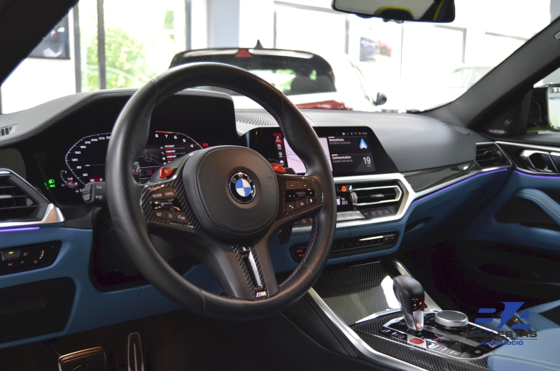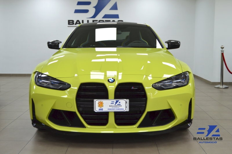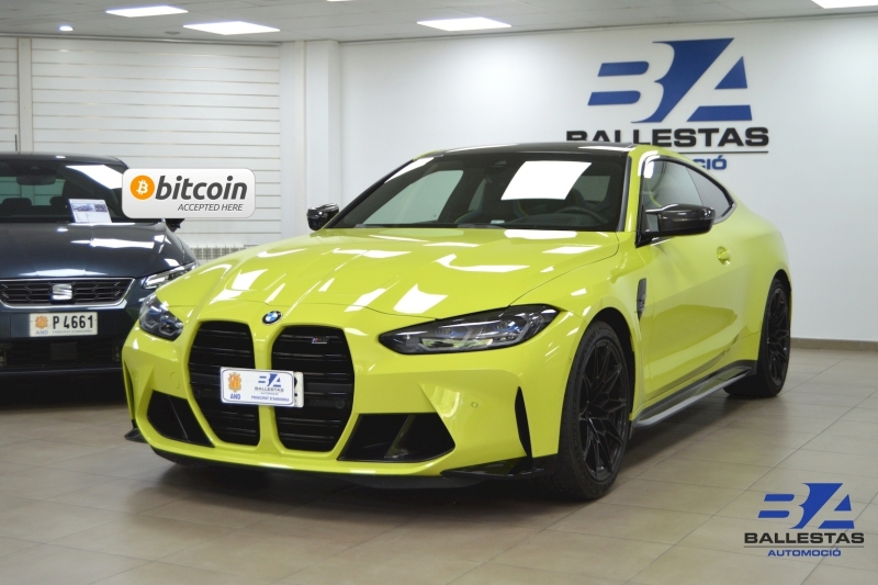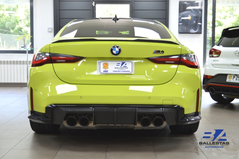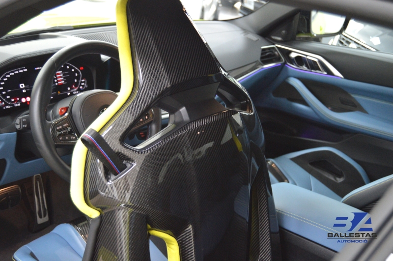 Espectacular BMW M4 Competition Coupé en color exclusiu Sao Paulo Gelb i interior Merino Yas Marina Blau/Groc, amb només 37.000 km.