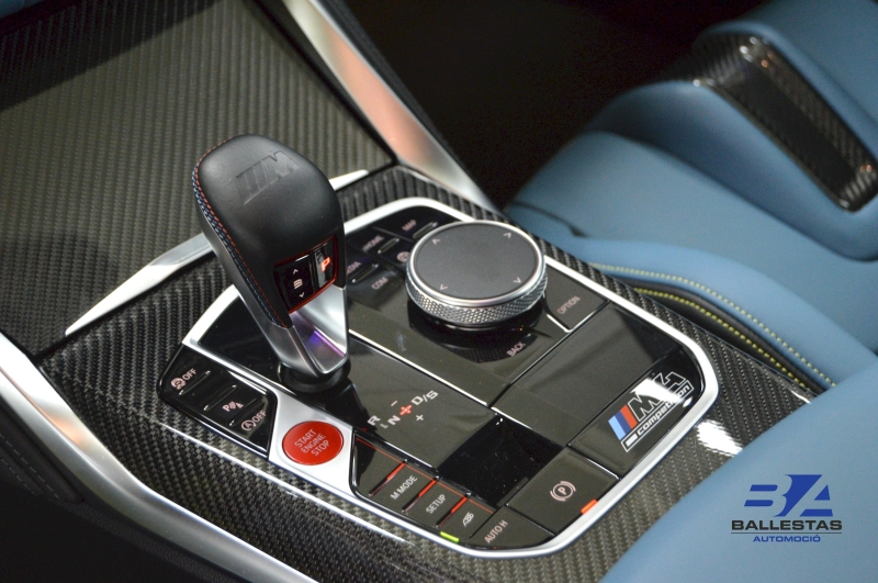 Sostre interior en antracita INDIVIDUAL Paquet M Drive Professional Seients M Carbono tipus baquet Paquet exterior M Carbono Llantes M de 19”/20” amb disseny 826 M i pneumàtics esportius Tapisseria en cuir Merino complet Yas Marina blau / NEGRE BMW Laserlight Head-Up Display Sistema de SO Harman Kardon Carregador sense fils per a mòbils Sostre de fibra de carbono Assistents de conducció avançats: Assistència de manteniment i canvi de carril Reconeixement de senyals Assistència de frenada d’emergència Assistència d’angle mort amb alerta de sortida i trànsit posterior Assistència d’aparcament amb càmera de visió posterior Sensor de pluja i llums Sistema de trucada d’emergència Sistema de navegació professional BMW Live Cockpit Connexió Apple CarPlay i Android Auto Volant M calefactable amb funcions multifunció i lleves Climatitzador automàtic trizona Suspensió adaptativa M Diferencial esportiu M Seients davanters elèctrics amb memòria i calefactats Accés i arrencada sense clau (Comfort Access) Tancament automàtic de maleter Paquet Shadow Line amb acabat de brillantor elevada Il·luminació ambiental interior Vehicle no fumador, amb historial complet a la BMW