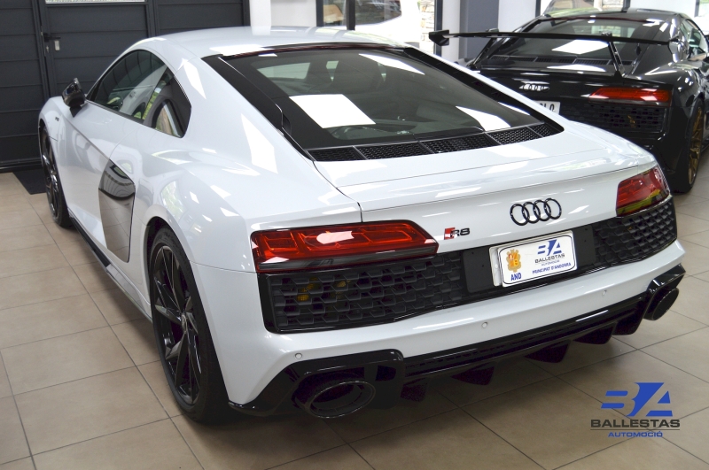 Actualment tenim disponibles 2 unitats de AUDI R8, aquesta es un espectacular Audi R8 Coupé RWD amb el seu impressionant motor V10 atmosfèric de 540 CV, propulsió posterior i només 29.400 km i tot de origen.