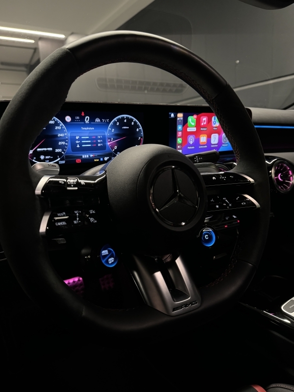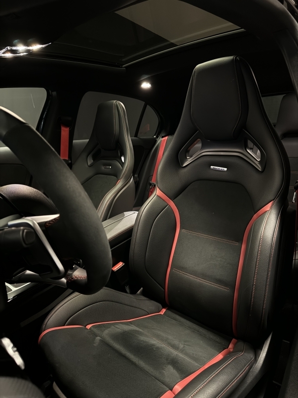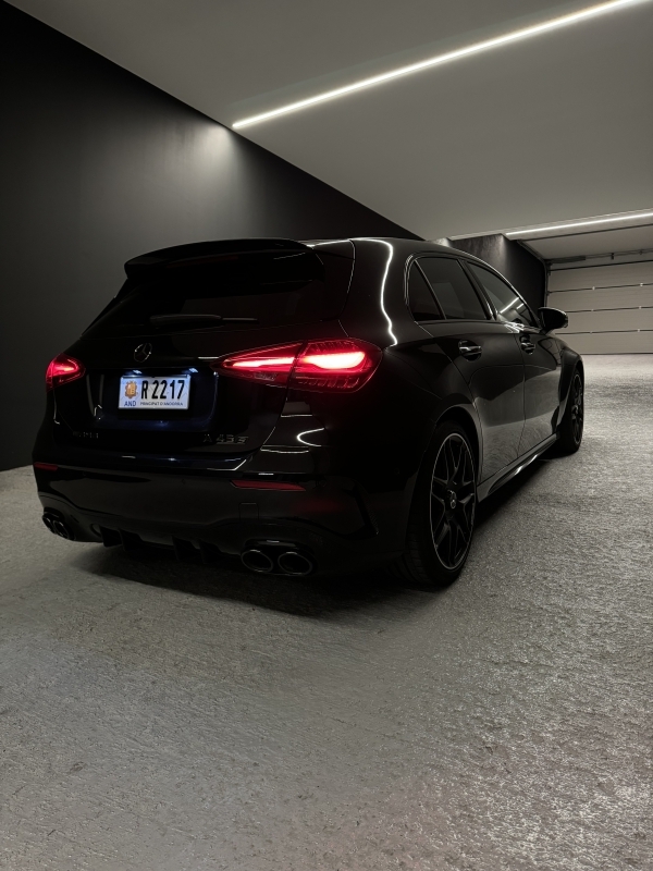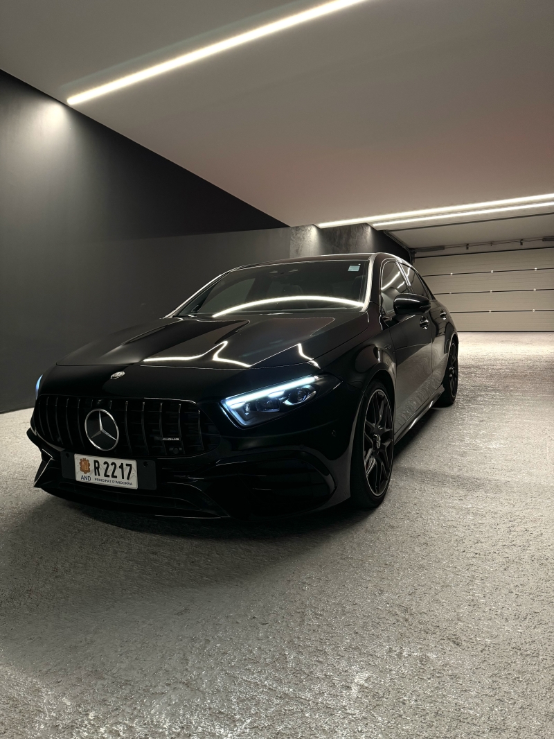 Mercedes A45s AMG 4Matic. Extres: - Seients tipus backet de cuir - Pinses de fre vermelles - Fars LED MULTIBEAM - Navegador GPS - Seients elèctrics amb memòria i calefactables - Volant multifunccions - Climatització automàtica - Canvi automàtic sequencial Regulador de velocitat adaptatiu - Sistema Hi-Fi Burmester - Bluetooth - Retrovisors elèctrics - Llandes aleació negres - Varis modes de conducció - Sensor de parking devant i darrere amb càmera 360 - Keyless arrencada sense clau - Recolzabraços central - Vidres tintats - etc...