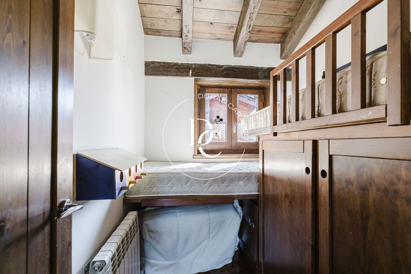 La zona de habitacions es troba a la part de adalt i te una habitacio tipo suite i dos habitacions dobles molt acollidores amb 3 llits cada habitació i els seus armaris empotrats, tot amb un disseny pràctic i funcional, ademés de un bany complert