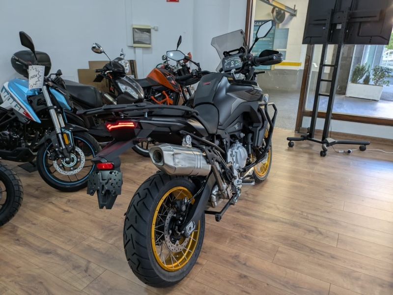 - Motor amb tecnologia germànica de referència. Bicilíndric de 895 cc, amb cigonyal calat a 270è i eix d’equilibrat. Desenvolupant una potència màxima de 95 CV i parell de 95 Nm, o 47 CV en versió limitada per al carnet A2, amb 4 modes de conducció adaptatius entre: Sport, Road, Rain i Enduro.
