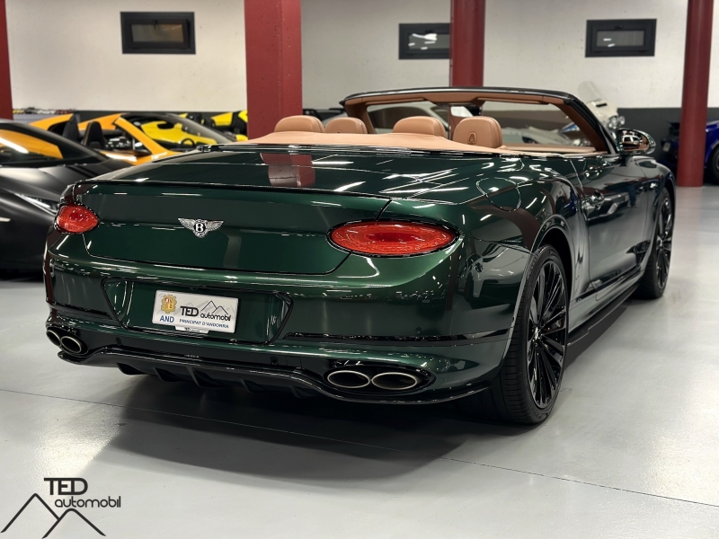 Bentley Continental GTC W12 Speed 659cv 4x4. Vehicle amb garantia 12 mesos. Extres: - Canvi Automàtic - Pack exterior carbono oficial Bentley - Escapament Akrapovic amb colaboració amb Bentley - Interior de cuir alcantara/marró - Parts del seient i volant en cuir especial vert - Moldures de piano black - Navegador GPS - Seients de cuir elèctrics amb memòria - Seients amb massatge - Seients calefactables i ventilats - Climatització automàtica - Telèfon Bluetooth - Calefacció a la nuca - Volant multifuncions de cuir i alcantara calefactable - Sistema 4 rodes direccionals - Regulador de velocitat - Suspensió pneumàtica - Navegador GPS - Rellotge - Varis modes de conducció - Mirall electrocròmic - Keyless arrencada sense clau - Llums amb LED - Sensor de pàrquing devant i amb càmera 360 - Sistema Hi-Fi Bang & Olufsen - Head Up Display - Fars Swarovski - Isofix - Deflector - etc...