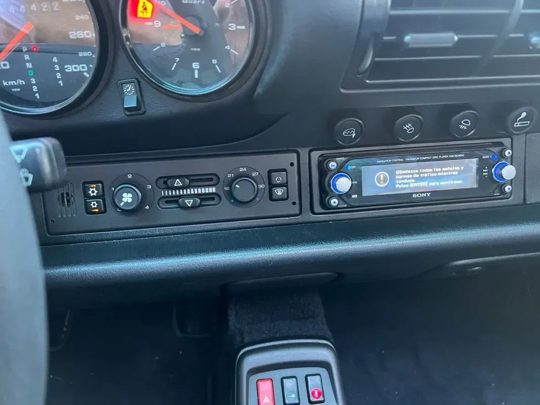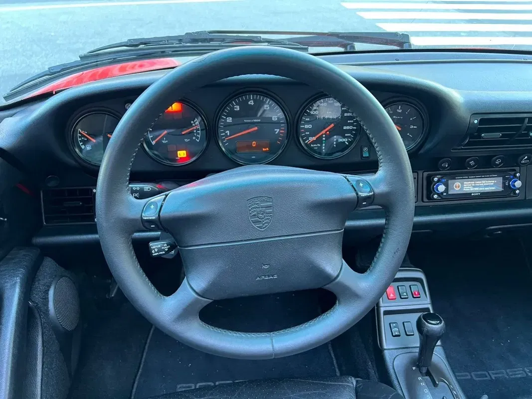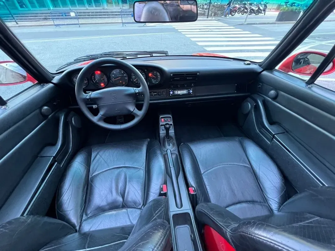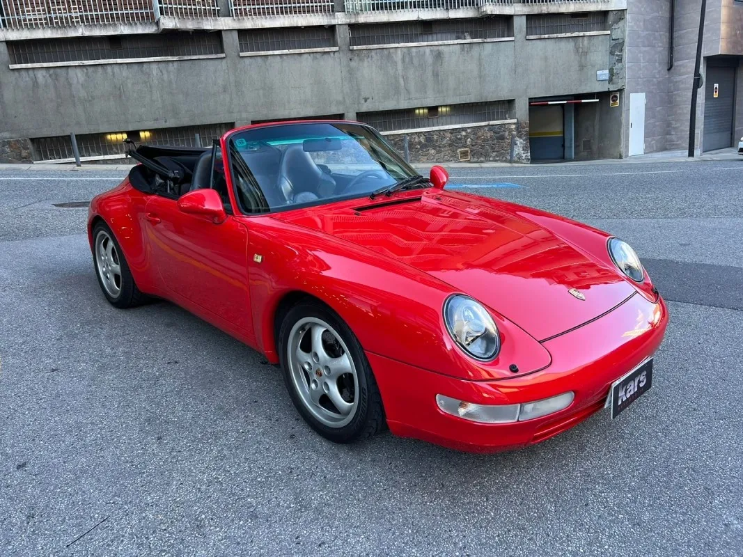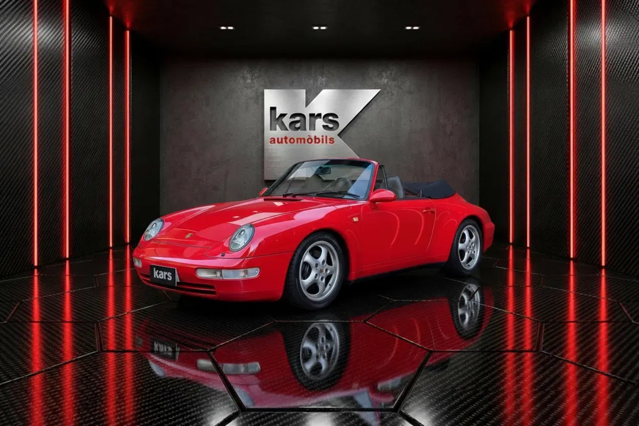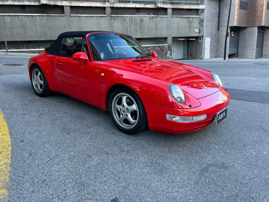 Porsche 911-993 Carrera Cabrio 272 HP. Automatic transmission - 12 months warranty - Vehicle in excellent condition - Front seats with electric adjustment, heated, upholstered in leather with the back painted in body color - Black hood with electric opening and closing - 17-inch alloy wheels - Air conditioning - Electric mirrors - Leather steering wheel with shift controls - Airbag front for driver - Sony sound system - Xenon headlights with windshield washers - Third rear brake light integrated in spoiler - Rear spoiler with electric deployment - Front headlight washer system - Central locking - Original alarm system - Available in our showroom.*We have taken care in the description of the features of this vehicle, but they do not represent a guarantee for typing errors and data transmission.