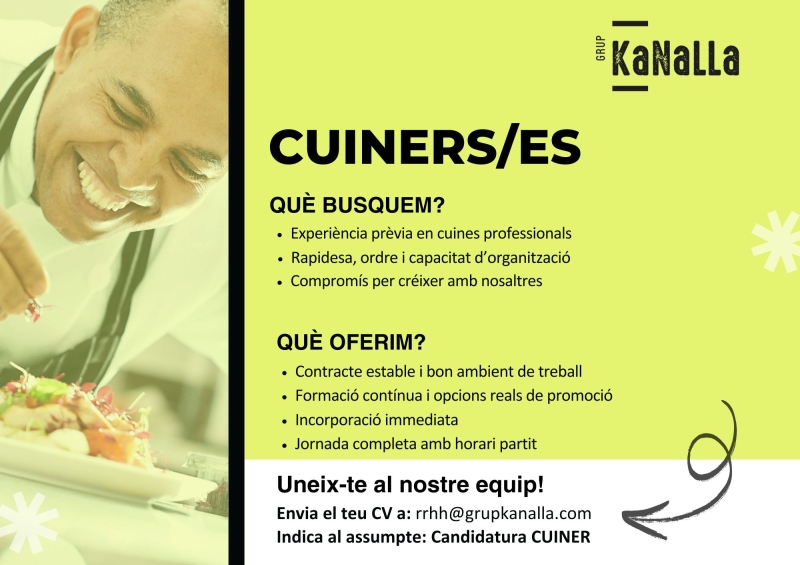 Send your CV to: rrhh@grupkanalla.com